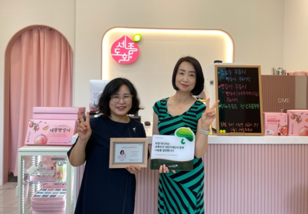 세종도화 차정님 이사는 “‘세종빵숭아’는 세종시를 대표하는 상징성 있는 상품을 제작하고자 4차례에 걸친 도전 끝에 이뤄낸 상품”이라며 “‘세종빵숭아’를 비롯한 ‘한글 양갱’, ‘한글 젤리’가 세종시를 대표하는 간식이 되기를 꿈꾸며 세종시 아이들을 돕기 위한 활동도 더욱 활발히 수행하겠다”라고 밝혔다.