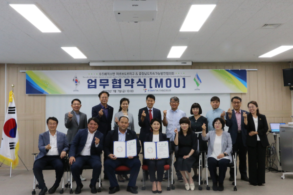 충청남도지속가능발전협의회는 지난 7일 우즈베키스탄 자르브다르지구의 보스턴시 관계자와 협의회 사무처에서 업무협약식을 가졌다