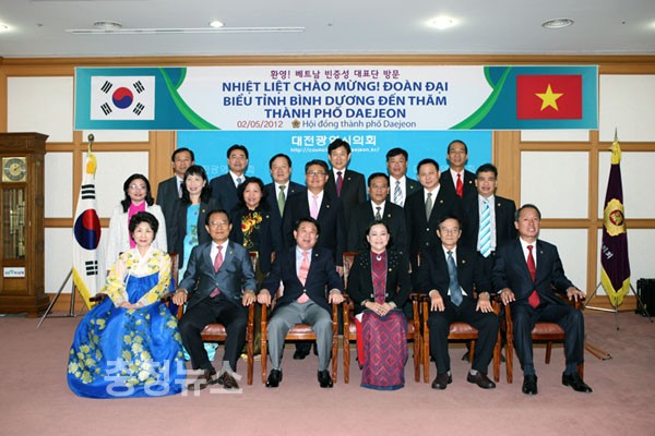 이상태 대전시의회 의장은 2일 오전 베트남 빈증성 인민의회 부의장을 비롯해 당 부위원장, 국제과 과장 등 베트남 빈증성인민의회 고위직 공무원 10명으로 구성된 ‘베트남 빈증성 인민의회 방문단’을 접견하고, 양 의회간 교류협력 활성화 방안에 대하여 의견을 교환했다.