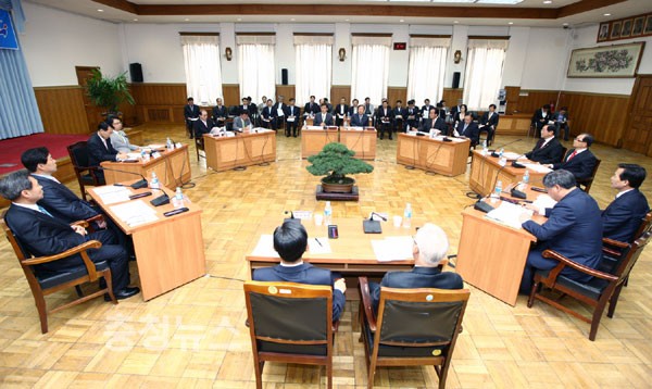 안희정 충남도지사는 3일 도청 대회의실에서 시장·군수 초청 간담회를 갖고, 도정 현안을 설명한 뒤 각 시‧군의 의견을 수렴했다.