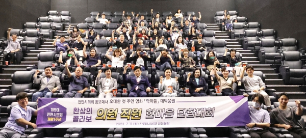 의원 및 직원들은 지난 11일 롯데시네마 천안불당점에서 천안시의회 첫 홍보대사인 오대환 배우가 주연을 맡은 영화 '악마들'의 흥행을 응원했다.