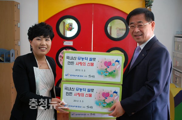 한국농어촌공사는 90회 어린이날을 맞이하여 전국 어린이집 104개(충남 7개)를 선정 무농약 쌀 과자세트 1만개(충남500명)를 나눠주는 행사를 열었다.