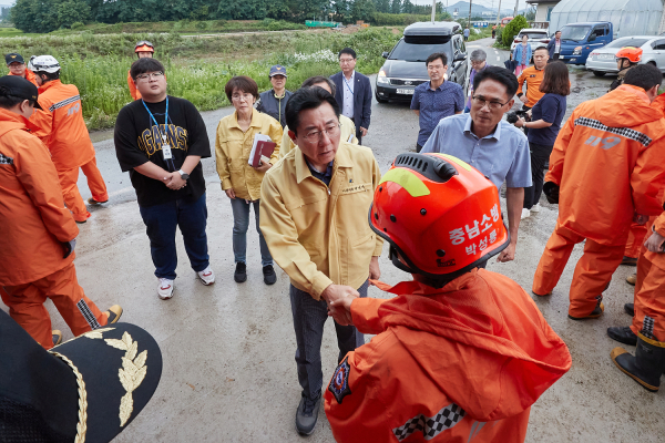 지난 15일 현장에서 신속한 수색 작업을 당부하고 있는 박경귀 아산시장/아산시 제공