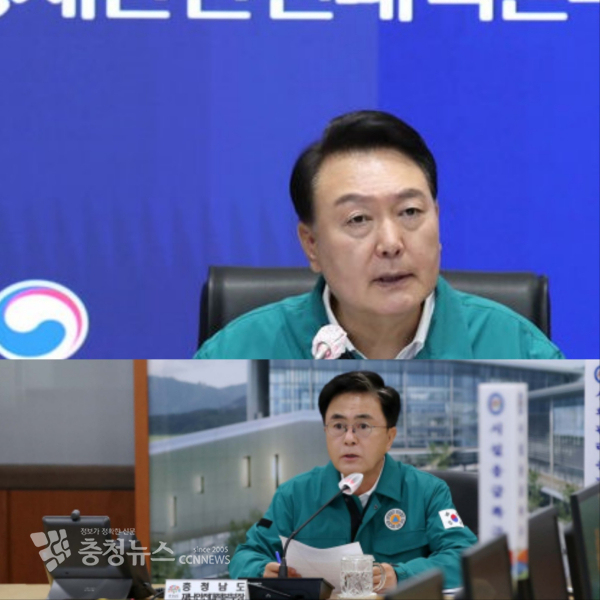 김태흠 충남지사는 17일 윤석열 대통령이 주재한 ‘집중호우 대처 중앙재난안전대책본부 화상회의’에서 “호우 피해가 큰 청양과 부여, 공주, 논산이 특별재난지역으로 조기 선포될 수 있도록 해 줄 것”을 대통령에게 건의했다.