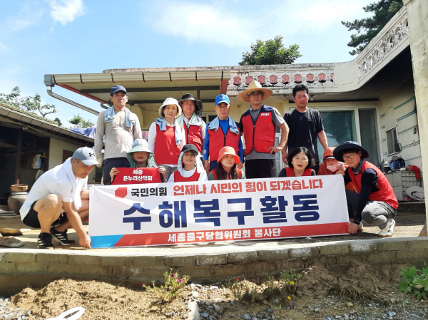 [충청뉴스 최형순 기자] 국민의힘 세종을 당원협의회(위원장 송아영)는 당원 20여 명과 함께 26일 연동면 문주길 175-7 양변순님댁 수해복구 자원봉사에 나서 훈훈한 감동을 주고 있다.