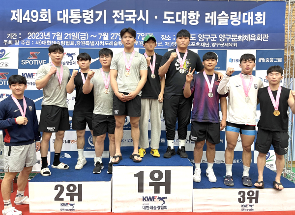[충청뉴스 박동혁 기자] 백석대학교 레슬링팀이 지난 21~27일 강원도 양구 양구문화체육회관에서 개최된 ‘제49회 대통령기 전국 시·도대항 레슬링대회’에서 금메달 1개, 은메달 4개, 동메달 5개를 따냈다.