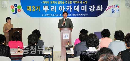 대전시 중구(구청장 박용갑)는 15일, 종합문화복지관에서 사회통합 지역리더를 육성하기 위한 제3기 뿌리아카데미 개강식을 가졌다.
