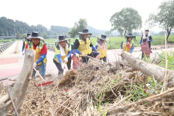 시의원·직원 등 30여 명, 하천 둔치 잔재물 수거