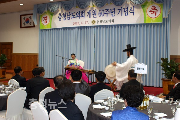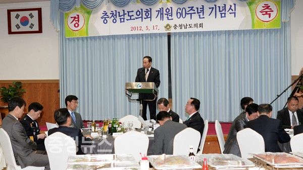 충남도의회(의장 유병기)가 개원 60주년을 맞아 17일 오후 도청 대회의실에서 안희정 도지사와 김종성 교육감, 정용선 충남경찰청장, 전직 도의원 및 각급 기관단체장 등 130명이 참석한 가운데 기념식이 열렸다.