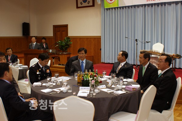 ▲ (왼쪽부터) 정용선 충남경찰청장, 안희정 충남도지사, 유병기 충남도의회 의장, 김종성 충남교육감 등이 참석했다.