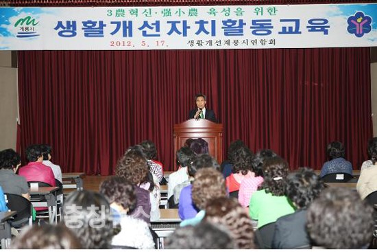 생활개선계룡시연합회(회장 인미경)에서는 지난 17일 농업기술센터에서 이기원계룡시장을 비롯한 내빈과 생활개선회원 120여명이 참석한 가운데 환경보전을 위한 자치활동교육을 실시했다.
