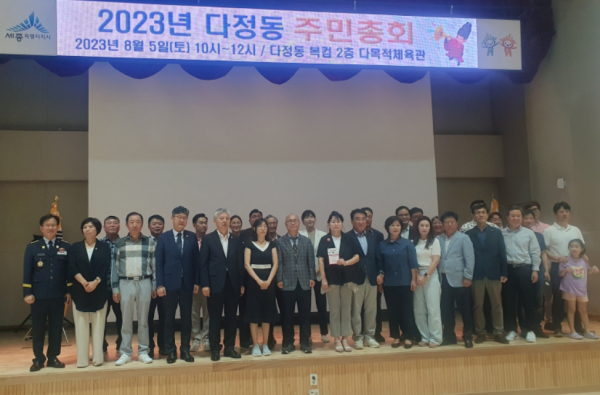 [충청뉴스 최형순 기자] 세종특별자치시 다정동 주민자치회(회장 신지혜)가 지난 5일 다정동 복합커뮤니티센터에서 200여 명의 주민이 참석한 가운데 주민총회를 개최했다.
