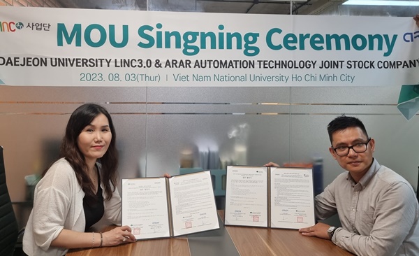 [충청뉴스 이성현 기자] 대전대학교 LINC3.0사업단이 베트남 현지 기업 ARAR Automation Technology Joint Stock Company와 상호 교류협력을 통한 지역경제 활성화 및 청년들의 안정적인 성장지원을 위한 업무협약을 체결했다고 6일 밝혔다.