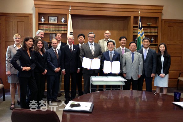 송기섭 행정중심복합도시건설청장(이하 행복청장)은 지난 17일 미국 오리건주 포틀랜드시 소재 Williams & Dame Development, OTAK, KeyBank, Jupiter 등 주요기업을 대상으로 세종시를 홍보하고, 샘 아담스 포틀랜드 시장과 MOU를 체결했다.