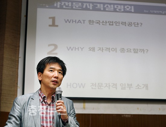 설명회를 진행하고 있는 한국산업인력공단 대전지역본부 정연우 전문자격팀장은 “학과별로 맞춤식 자격증 설명회를 갖고 있어 학생들의 호응도가 높다”고 말했다.