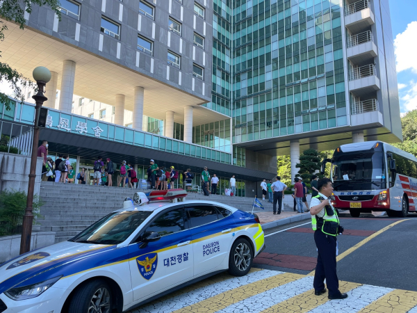 대전경찰이 8일 태풍 카눈 북상에 따라 대전에 체류하게 된 잼버리 참여자들의 안전한 숙소 이동을 위해 에스코트 하고 있다. 저작권자 © 충청뉴스 무단전재 및 재배포 금지 김윤아 기자 다른기사 보기 기사가 마음에 드셨나요? 충청뉴스 좋은 기사 후원하기 1,000원 3,000원 5,000원 10,000원 30,000원 50,000원 직접입력 비회원 약관동의하기 ※ 소중한 후원금은 더 좋은 기사를 만드는데 쓰겠습니다.