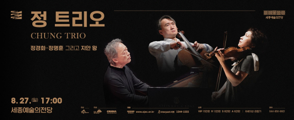 [충청뉴스 최형순 기자] 세종시문화재단(대표이사 김종률)은 이달 말 27일 오후 5시 세종예술의전당에서 세계적인 바이올리니스트 정경화와 지휘자 정명훈 남매의 ‘정 트리오’ 공연을 개최한다고 9일 밝혔다.