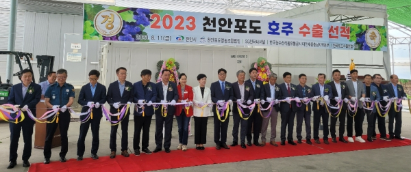 [충청뉴스 박동혁 기자] 충남 천안시의 대표 농·특산물인 ‘하늘그린 거봉포도’가 호주 수출길에 올랐다.