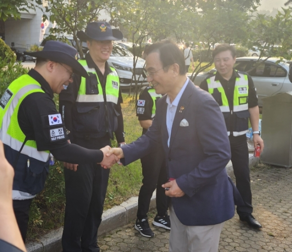 자율방범대원들을 격려하는 박상돈 시장/박동혁 기자