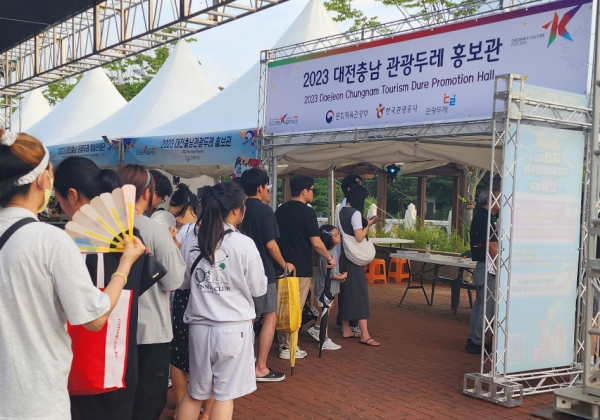 홍보관 이벤트에 참여하려는 관람객들/박동혁 기자