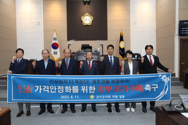 [충청뉴스 금산 = 조홍기 기자] 금산군의회(의장 김기윤)는 지난 11일 제306회 금산군의회 임시회를 열고 ‘인삼가격 안정화를 위한 정부 조기 수매 촉구’ 건의문을 채택했다.