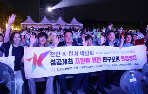 그동안 천안 K-컬처 박람회 성공개최를 위해 연구모임 이상구 대표의원과 강성기·김강진·노종관·류제국·육종영·이종만 의원은 간담회와 타 지역 현장 방문 등 지속적인 연구를 진행했으며, 이를 토대로 박람회 현장을 꼼꼼히 살피며 찰물 의정을 실현했다.