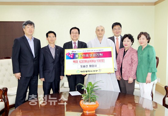 어려운 이웃을 위해 사용 ▲ 도솔산 화암사, 이웃돕기 쌀 기탁 대전시 서구(구청장 박환용)는 지난 24일 도솔산 화암사로부터 관내 어려운 이웃을 위해 사용해 달라며 사랑의 쌀 108포(4,320kg)를 대전사회복지공동모금회에 지정 기탁 받았다. 저작권자 © 충청뉴스 무단전재 및 재배포 금지 문요나 기자 다른기사 보기 기사가 마음에 드셨나요? 충청뉴스 좋은 기사 후원하기 1,000원 3,000원 5,000원 10,000원 30,000원 50,000원 직접입력 비회원 약관동의하기 ※ 소중한 후원금은 더 좋은 기사를 만드는데 쓰겠습니다.