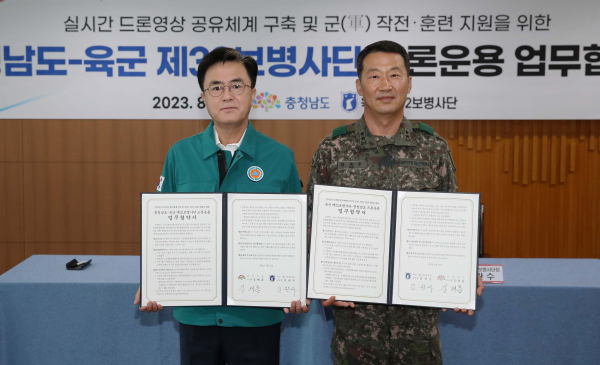 양 기관은 구체적으로 ▲충청남도 드론통합관제센터·군부대 상황실 간 드론 영상 공유체계 마련 ▲각종 재난·재해, 군 작전·훈련 시 드론 운용을 통한 공조 체계 구축·유지 ▲드론 운영 기술 공유 및 인력 양성을 위한 교육 지원 등 드론 분야의 협력을 약속했다.