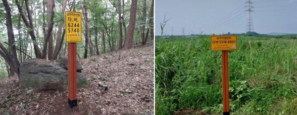 [충청뉴스 박동혁 기자] 충남 아산시는 산길 따라 삼백리(망경산-태화산 등산로 인근)와 물길 따라 이백리(효의 길 인근)에 국가지점번호판 20개를 추가 설치했다고 22일 밝혔다.