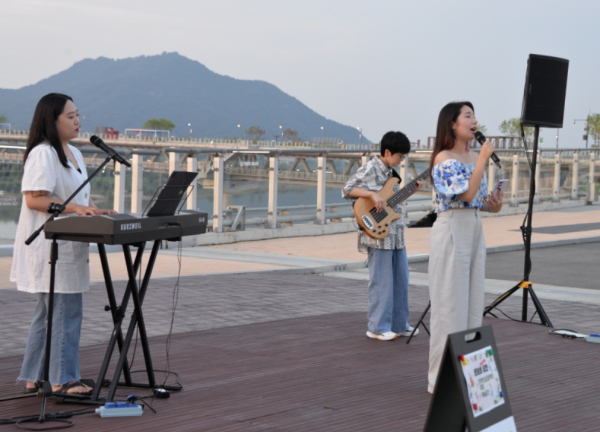 열광하는 이응 다리 6시 방향에서 ‘걷다 보니, 버스킹’ 공연