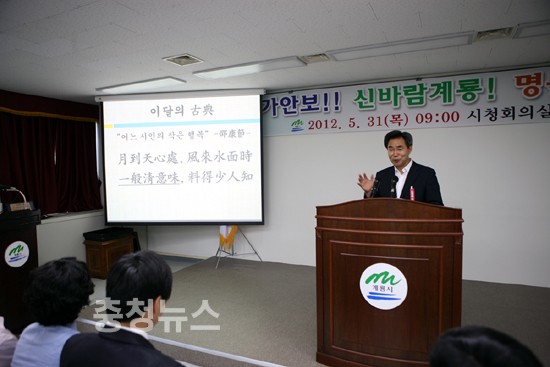 이기원 시장은 직원모임을 마치면서 이달의 고전으로 邵康節(소강절)의 시 ‘어느 시인의 작은 행복’ 月到天心處(월도천심처), 風來水面時(풍래수면시), 一般淸意味(일반청의미), 料得少知音(료득소지음) ‘달이 천심에 이르고 바람이 물위를 스칠 때 이 모든 것이 맑은 뜻과 맛을 세상 사람은 아는 이 드물구나’ 라고 소개하면서 “행복한 가치관 속에 행복을 즐기는 공무원이 될 것”을 전했다.