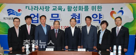 대전지방보훈청(청장 신영교)은 1일 대회의실에서 대전사랑시민협의회(회장 이상윤)와 '나라사랑 교육' 활성화를 위한 업무협약을 체결했다고 밝혔다.