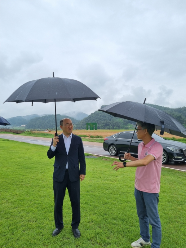 이번 방문은 대백제전 개막이 24일 앞으로 다가온 가운데 2차 장마 시작에 따른 미르섬 복구현황, 안전, 교통 등 전반적인 행사장 조성 상황을 확인하고자 마련됐다.