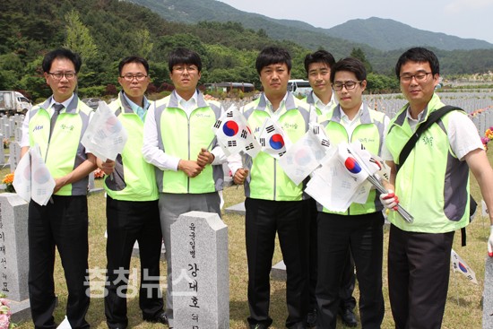 또한 자원봉사 우수기업으로 선정된 하이트진로(대전지점장 오양균)은 호국보훈의 달을 맞아 대전지점 직원들과 함께 대전국립현충원에서 순국 선열과 호국영령께 참배하고 태극기 달기 봉사활동을 전개했다.