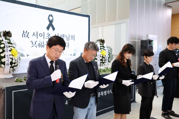 최교진 교육감은 추도사에서 “故 서이초 선생님의 명복을 빌며 미안함과 부끄러움과 책임을 통렬히 반성한다”라면서, “선생님께서 우리에게 남긴 정당하게 가르칠 권리, 제대로 배울 권리, 교육활동 보호라는 대명제의 해결을 위해 세종교육공동체가 함께 노력해 나가겠다”라고 말했다.