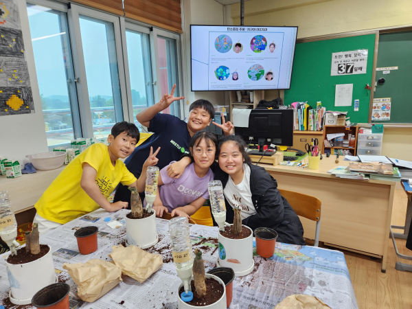 이번 교육으로 학생들이 다양한 업사이클링 재료들을 활용해 공기정화 식물 화분을 직접 가꿔보는 실생활 체험을 했다.