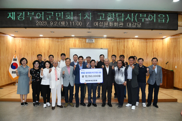 특히 이날 군민회 회원들은 지난 집중호우로 피해 입은 동향(同鄕)의 빠른 일상생활에 힘을 보태고자 십시일반 모은 성금 1,200여만원을 부여군에 기탁했다.