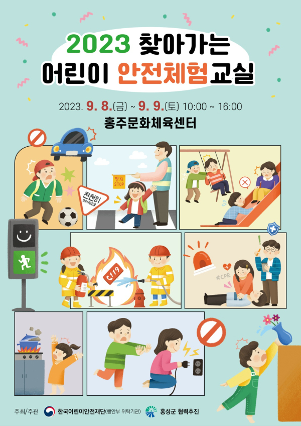 한국어린이안전재단과 홍성군이 협력 추진하는 이번 행사는 오는 8일부터 9일까지 2일간 홍주문화체육센터에서 오전 10시부터 오후 4시까지 진행된다.
