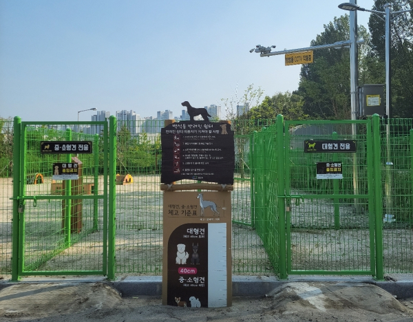 반려인 쉼터는 중·소형견과 대형견 전용 공간이 구분돼있고 퍼걸러와 놀이시설, 음수대 등 편의시설을 비롯해 안전을 위한 조명등과 CCTV도 설치돼있다.