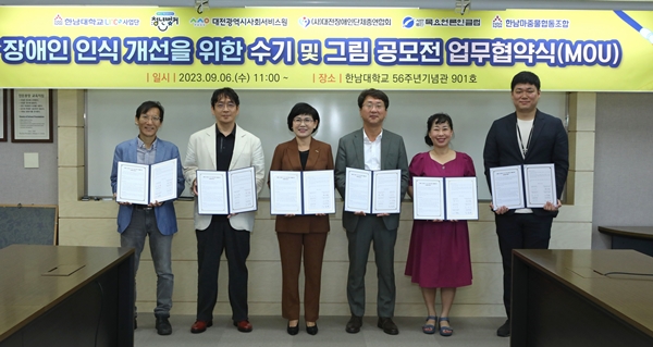 [충청뉴스 이성현 기자] 장애인 인식 개선을 위한 수기·그림 공모전 개최에 앞서 6개 기관이 업무협약을 체결했다.