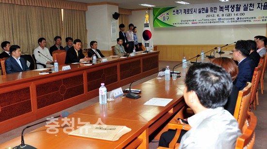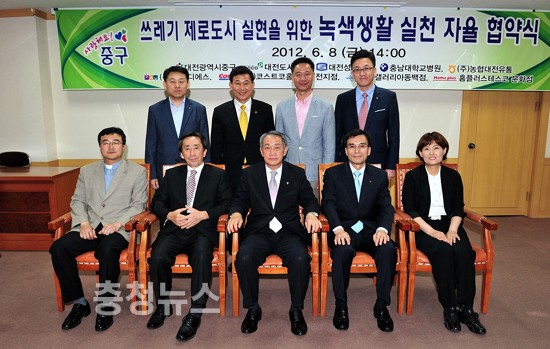 대전 중구(구청장 박용갑)는 지난 8일, 쓰레기로 인한 도심경관 저해를 예방하고 깨끗한 중구 구현을 위해 관내 9개 단체와 '쓰레기 제로도시 실현을 위한 녹색생활 실천협약'을 체결 했다.