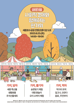 [충청뉴스 최형순 기자] 세종시가 주최하고 세종시사회적경제추진위원회가 주관하는 사회적경제 ‘모두의 이응’ 행사가 민족의 대명절 추석을 앞두고 오는 23일 세종컨벤션센터 앞 도로에서 열린다.