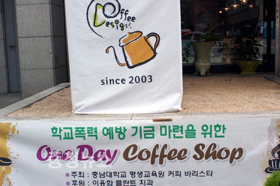 대전시교육청소속 서구 탄방 초등학교 교사를 비롯한 샘머리 초등학교 교사들이 주도하는 학교폭력예방기금 마련을 위한 일일 찻집 행사가 10일 오전11시부터 서구 탄방동소재 커피디자인에서 열렸다.