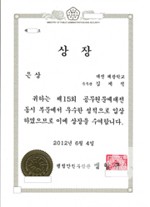 김계석 주무관은 동시부문 ‘택배 아저씨’로 은상에 선정되었으며, 학교에서도 항상 긍정적이고 밝은 미소로 장애아동들을 대하는 마음이 따뜻한 주무관으로 알려져 있다.