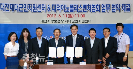 대전지방보훈청(청장 신영교) 제대군인지원센터는 11일 오전 4층 대회의실에서 (사)대덕이노폴리스벤처협회(회장 장영복)와 제대군인 취업 촉진을 위한 '기업협력 MOU 체결식'을 가졌다고 밝혔다.