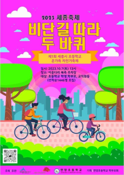 [충청뉴스 최형순 기자] 세종시 연양초등학교는 2023 세종축제 ‘비단길 따라 두 바퀴’ 행사인 ‘제1회 세종시 초등학교 온 가족 자전거 축제’에 참여할 학생과 시민을 모집한다.