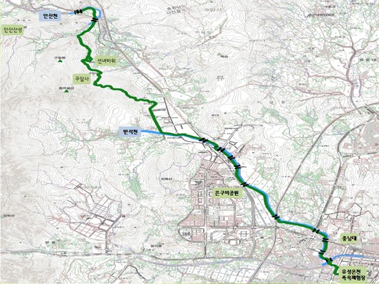 국립대전현충원과 갑하산, 우산봉을 통과하는 2코스와 대덕사이언스길과 외삼동, 안산천을 따라 조성될 예정인 3코스는 추후 국비를 확보해 진행할 계획이다.