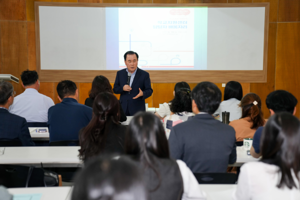 이번 배움자리는 학교지원센터 업무담당자의 학교업무최적화 추진 역량 강화를 목적으로 중점 추진하고 있는 ‘기간제 교원 위탁 채용’의 확대 방안을 모색하고, 교원 업무경감을 위한 하반기 주요 사업 추진계획을 공유했다.