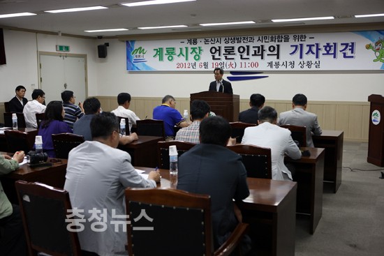 이기원 계룡시장은 19일 오전 계룡시청 상황실에서 '계룡·논산시 상생발전과 시민화합을 위한' 기자회견을 열었다.