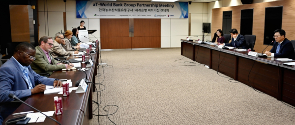 한국농수산식품유통공사 김춘진 사장(우측 1번째), 크리스토퍼 브렛(Christopher Brett) 세계은행(World Bank) 농업환경국장(좌측 2번째)